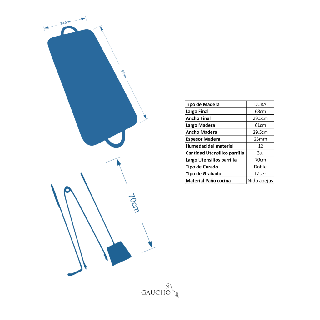 - Kit asador de 3 piezas: palita, barredor y pinza brasera.