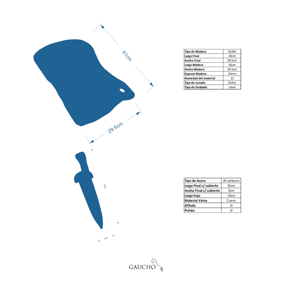 - Tabla de eucalipto colorado (41x29,5 cm) – madera reforestada, con doble curado a base de vaselina y cera de abejas para mayor protección y durabilidad.