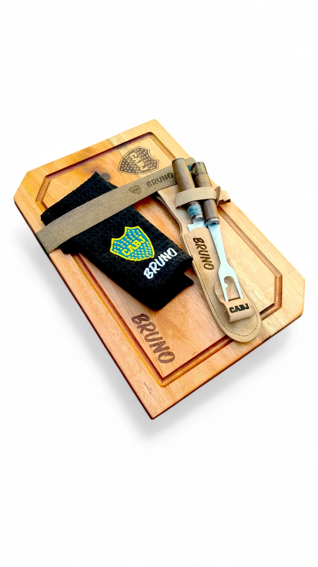- Tabla de eucalipto colorado (41x29,5 cm) – doble curado a base de vaselina y cera de abejas para máxima protección y durabilidad.