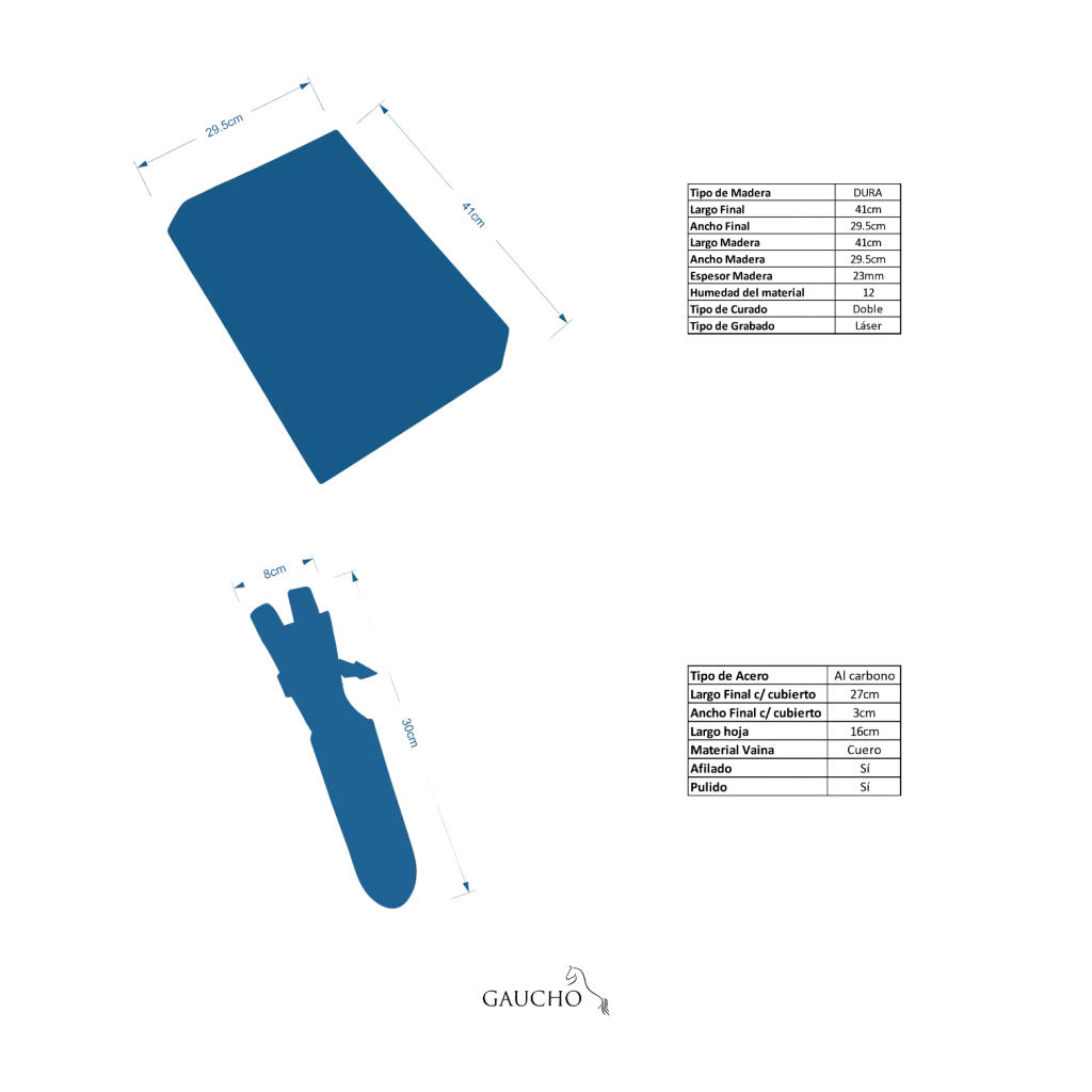 Nota: Imágenes ilustrativas; colores de repasador y faja, tonalidad y veta de la madera, así como modelos de vaina, pueden variar, resaltando el carácter artesanal y único de cada pieza.