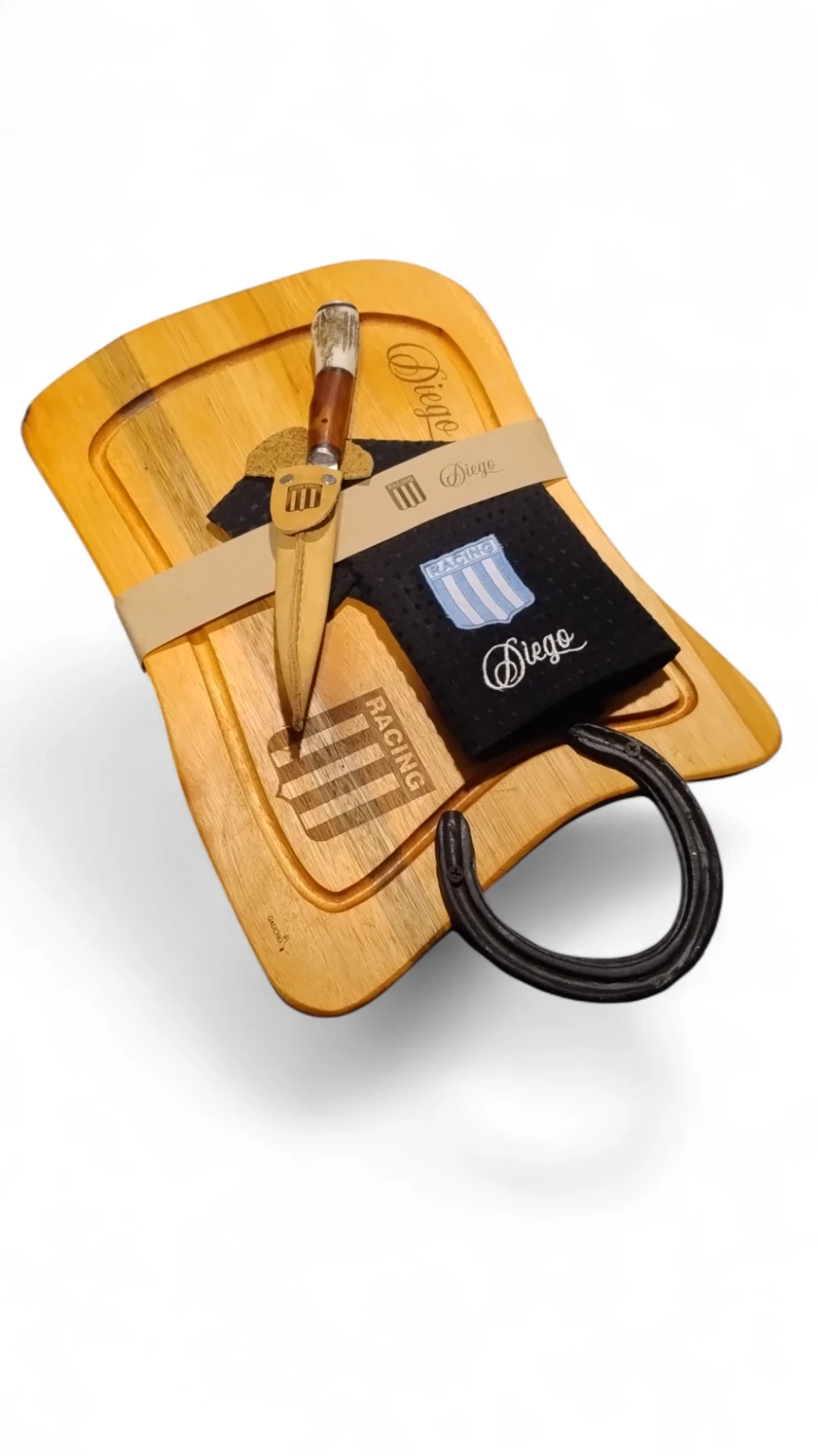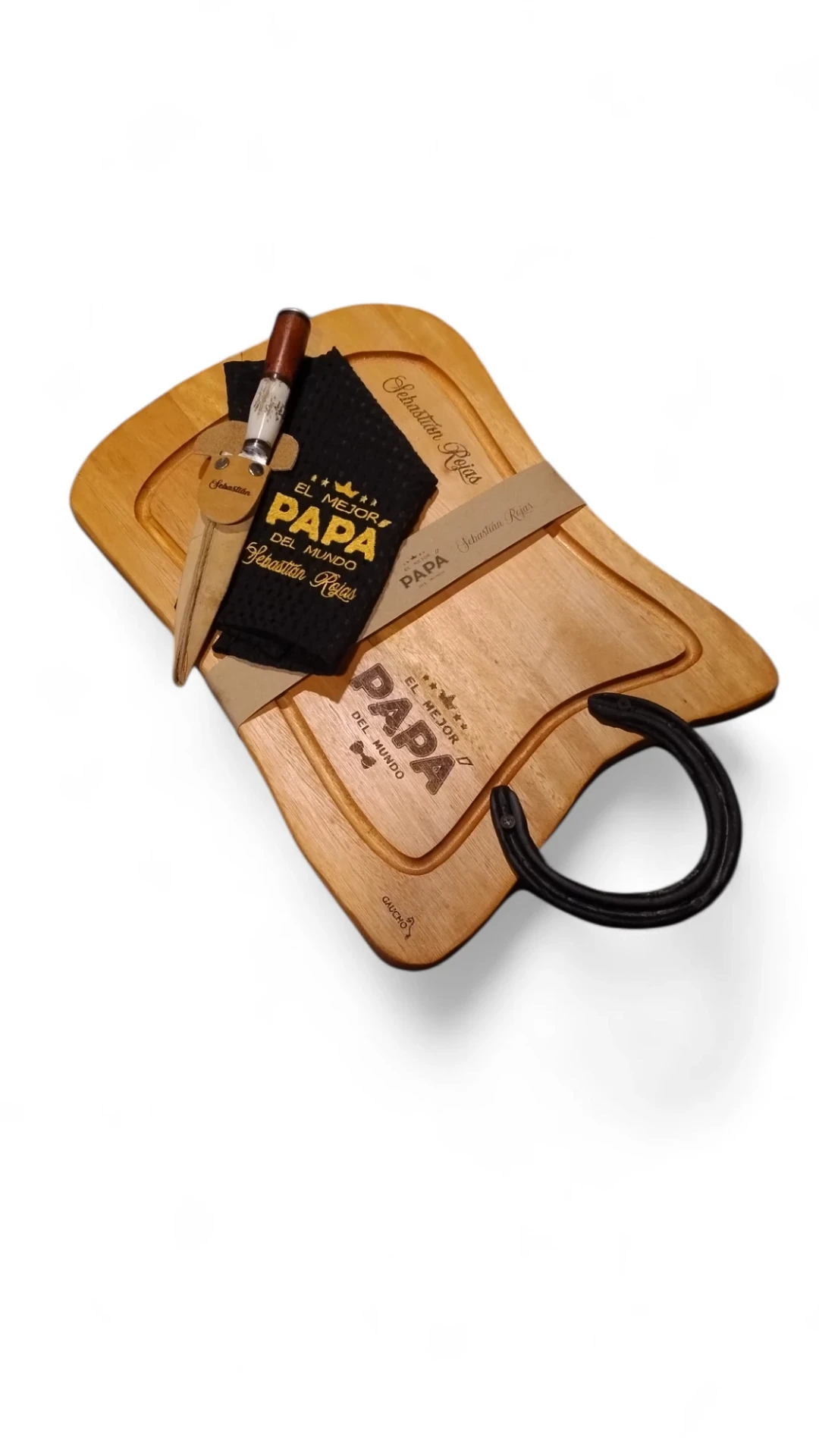 - Tabla de eucalipto colorado (41x29 cm) – doble curado con vaselina y cera de abejas para máxima protección y durabilidad.