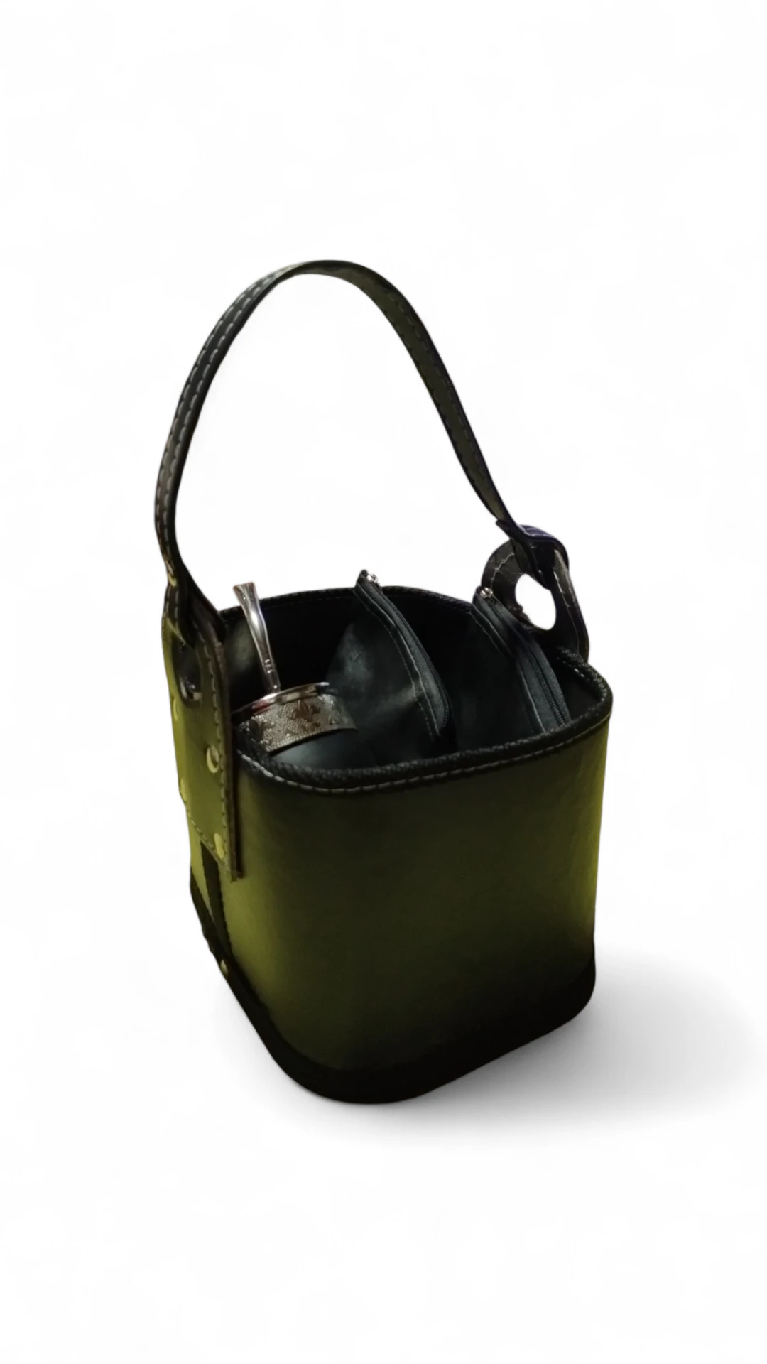 1️⃣ Canasta matera de ecocuero – práctica y resistente.
