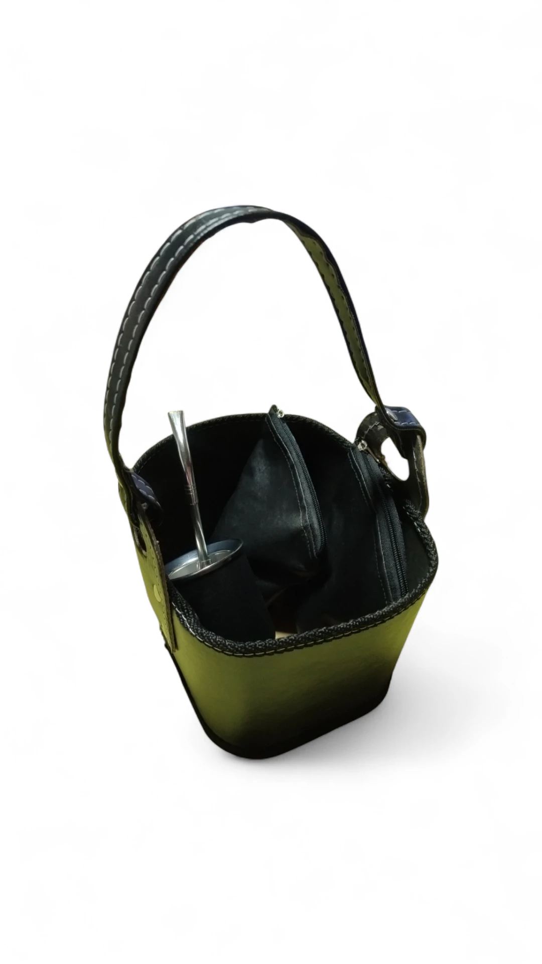 1️⃣ Canasta matera de ecocuero – práctica y resistente.