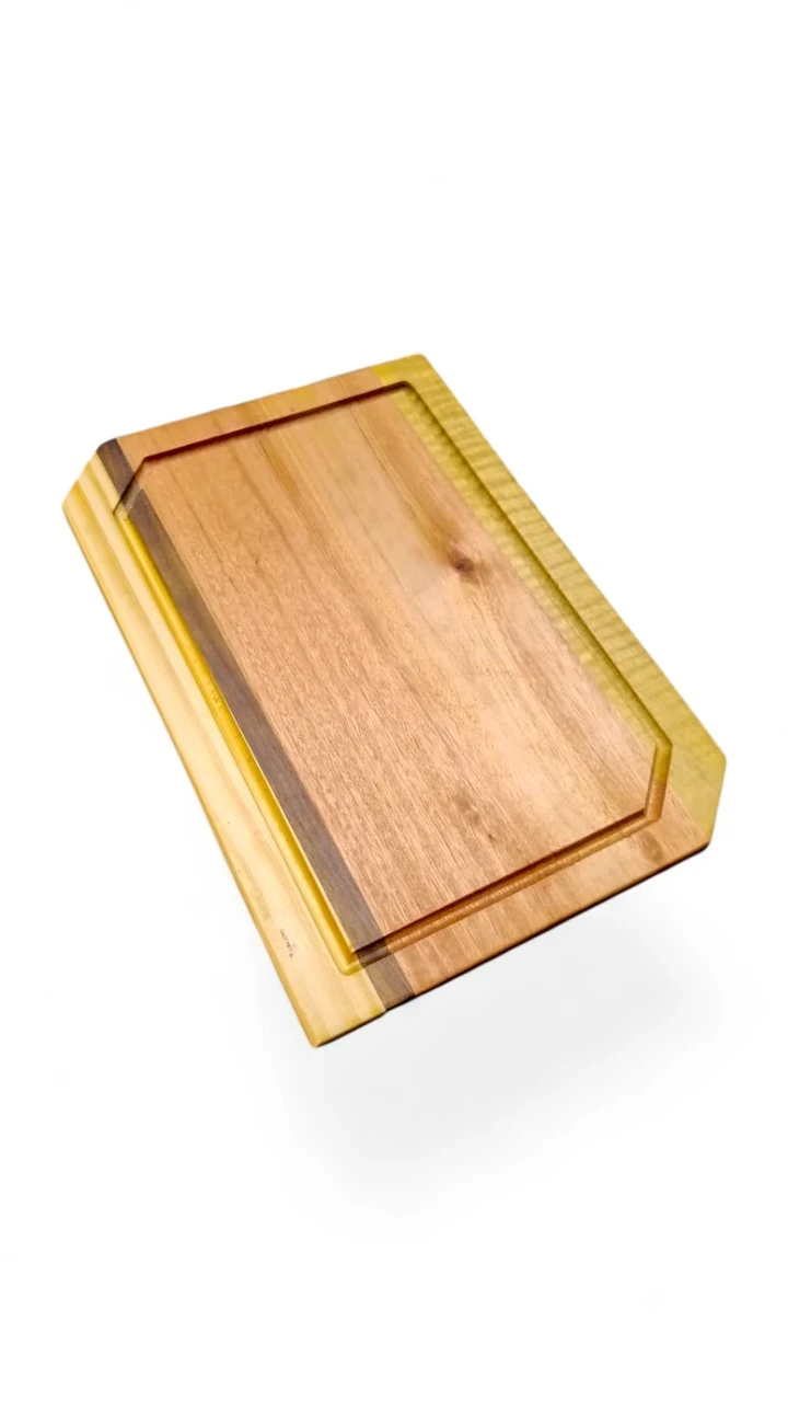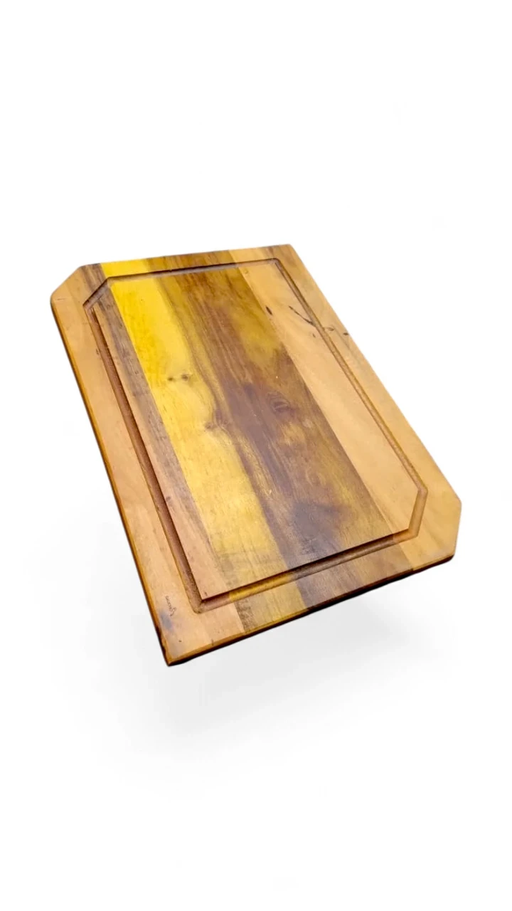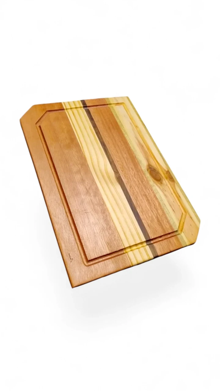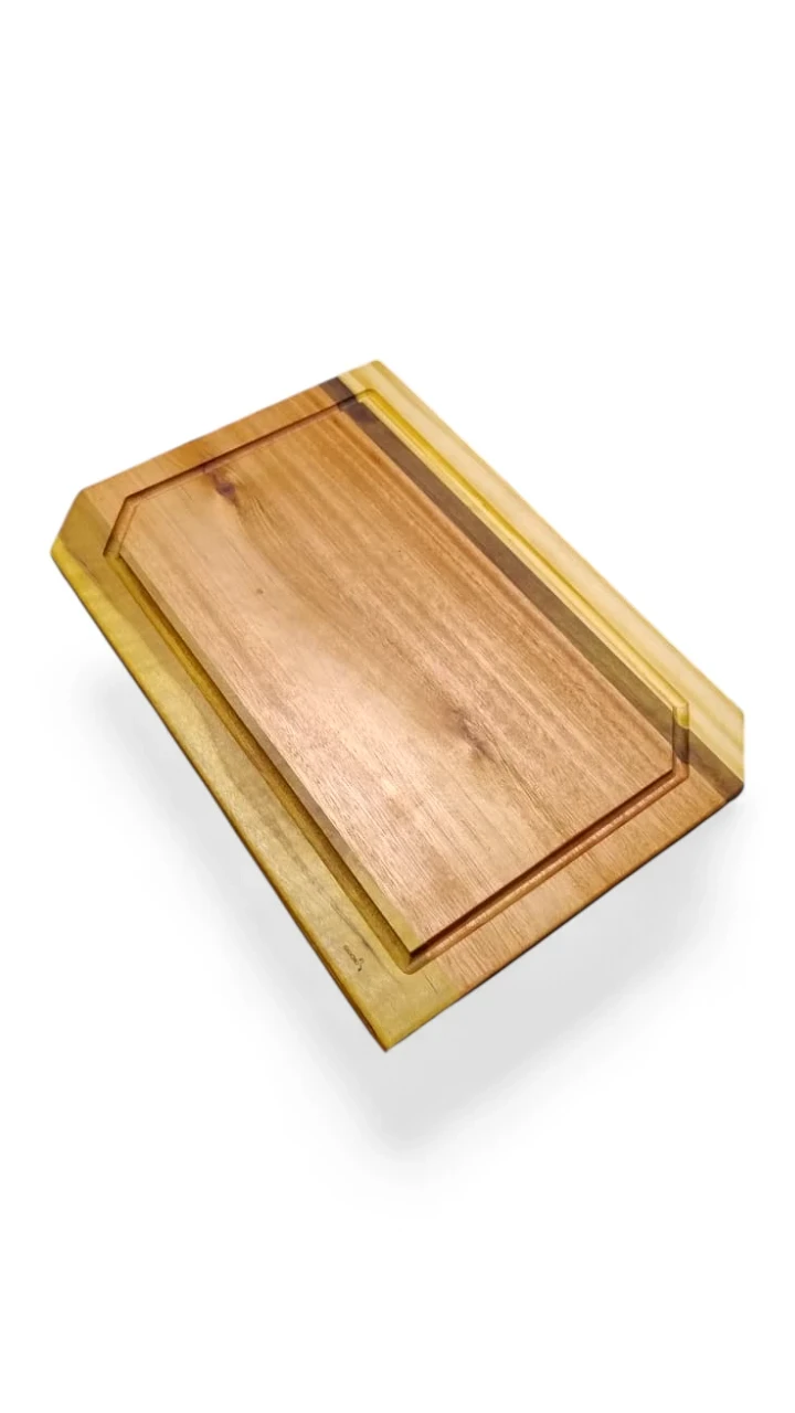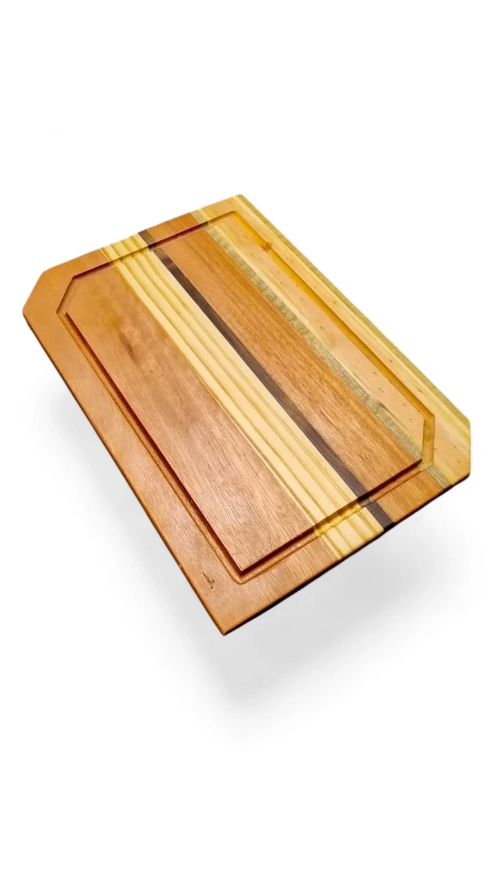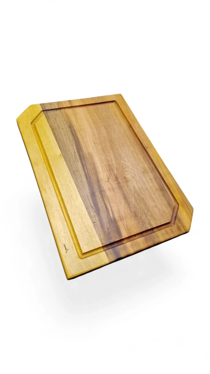 - Tabla de maderas duras mixtas (Zoita, peteribí, guatambú, Loro Blanco, Laurel) de 41x29 cm – doble curado con vaselina y cera de abejas para máxima protección y durabilidad.