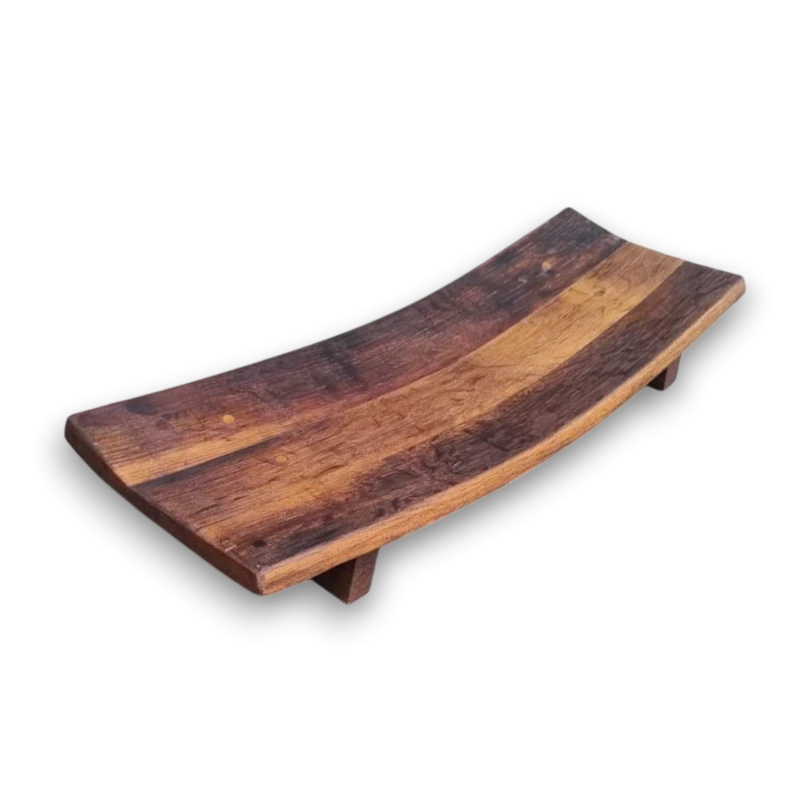 - Tabla de madera en Roble Francés seleccionado de barricas en 2do uso de excelente estado. Las duelas se desarman, se realiza trabajo de carpintería nuevo, con encolado de maxima resistencia a humedad y torción. Se recitifica cara superior para manipulación de alimentos, se cura doblemente en cera de abejas.